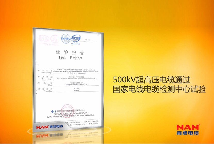 公司是ISO質(zhì)量處理系統(tǒng)、環(huán)境處理系統(tǒng),作業(yè)健康安全處理系統(tǒng)、計量確保系統(tǒng)認證企業(yè),具有廣東省電纜作業(yè)僅有的工程技術(shù)研討開發(fā)中心,南洋電纜具有多項專利并多次參與國家規(guī)范及作業(yè)規(guī)范的擬定,不斷立異開發(fā)新產(chǎn)品。35kV及以下電纜產(chǎn)品獲得全國工業(yè)產(chǎn)品出產(chǎn)許可證,電線產(chǎn)品經(jīng)過我國質(zhì)量認證中心CCC認證,110kV電纜經(jīng)過我國電力企業(yè)聯(lián)合會產(chǎn)品斷定,220kV電纜系統(tǒng)經(jīng)過預(yù)斷定試驗;500kV電纜系統(tǒng)經(jīng)過型式試驗和荷蘭凱馬(KEMA)認證,加添華南地區(qū)500kV電纜產(chǎn)品的空白,可代替進口產(chǎn)品,電纜制造技術(shù)抵達國際搶先水平。